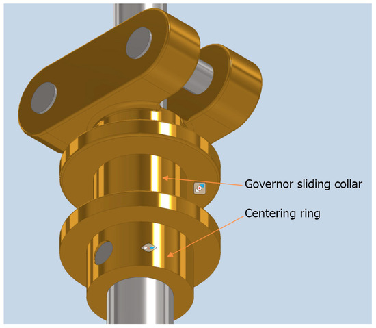 The governor sliding collar will be assembled on the centering ring, it being necessary to have a concentricity constraint between the governor vertical spindle and the governor sliding collar itself, as well as a leveling constraint between the centering ring and governor sliding collar (Figure 27).
