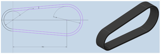 To start the second subassembly, we begin by designing the drive belt (Figure 30), which must be made of an elastomeric material for its correct operation.