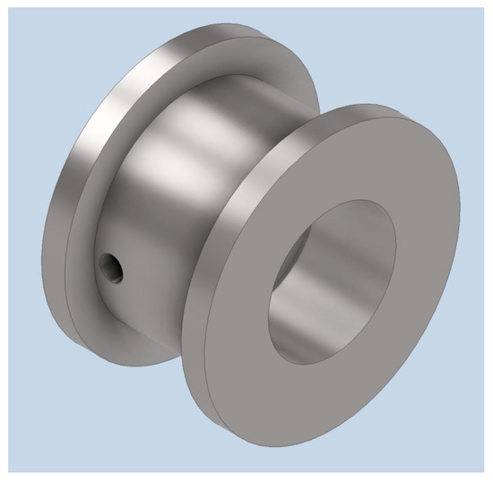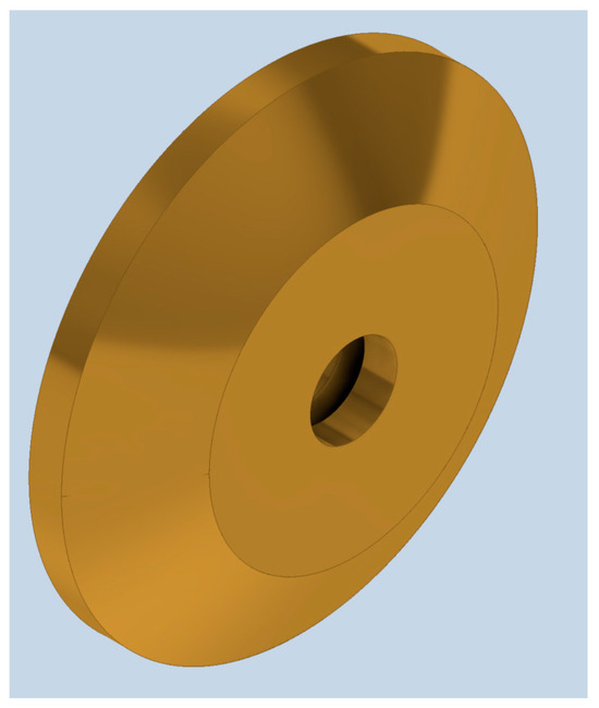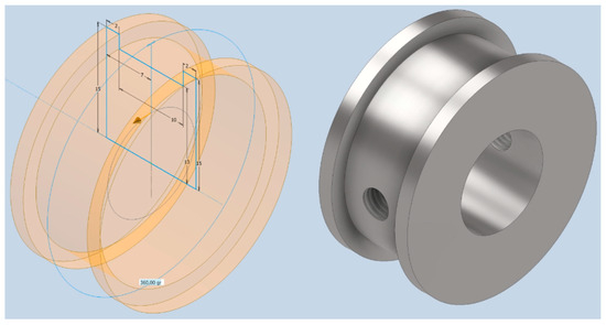 This drive belt will be attached to two governor drive pulleys, each with a diameter according to each part of the belt. Firstly, we can see how the larger diameter one was made. To do this, a profile was drawn and revolved on its axis in order to form the surface of revolution and make the respective holes (Figure 31).