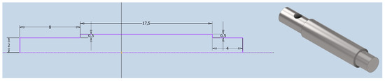 Everything starts from the governor vertical spindle. For its design, the central shaft was created, half of it as a sketch, and subsequently a revolution was performed to obtain the complete piece. Next, two holes were drawn in its respective sketch and the Boolean operation of elimination was performed (Figure 16).