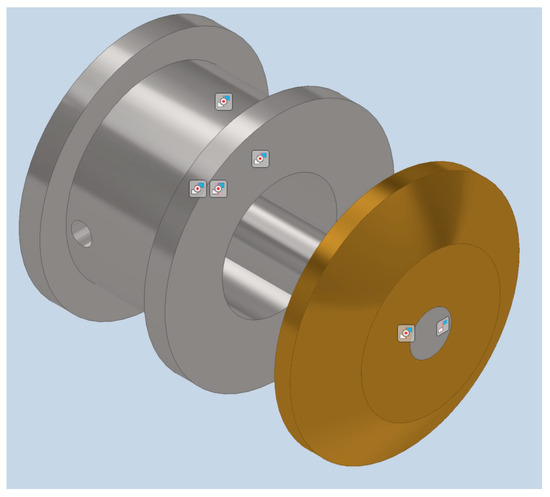 To finish this first subassembly related to the speed governor, some counterweights must be assembled using the same concentricity constraints between holes and cylindrical elements and leveling between faces (Figure 28). The final result of this first subassembly is shown in Figure 29.
