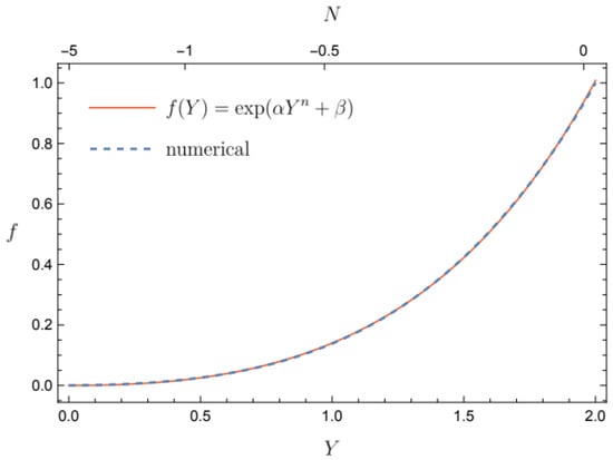 The function in Equation (31) has been studied in Ref. [41], where the cosmological implications are evaluated, and here the main steps are reported. More precisely, the function studied by the authors can be obtained from Equation (31) by setting