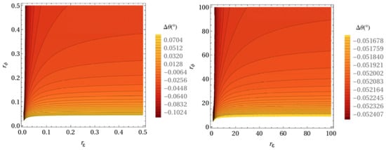 with and being the Ricci and the Riemann tensors, respectively. This combination of second-order invariants gives rise to a topological surface term, which in four dimensions is the Euler density. Often, in order to reduce the order of the field equations and the related dynamics, a function of is evaluated for cosmological and astrophysical purposes [24,25].