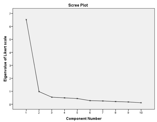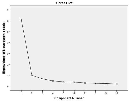 As a result of the exploratory factor analysis, it was determined that the Likert scale and the neutrosophic scale, both consisting of 10 items, explained 65.277% and 61.287% of the total variance, respectively. Accordingly, it was concluded that the Likert scale and the neutrosophic scale were valid, suggesting that a single component (a unidimensional construct) was sufficient for both scales, as shown in