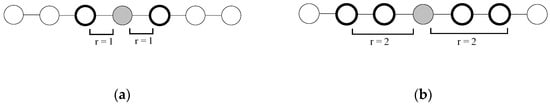 Figure 1. (a) One-dimensional CA with radius = 1; (b) One-dimensional CA with radius = 2.