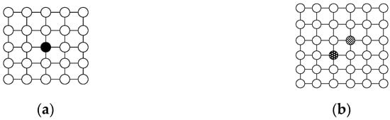 - Fuks, H. Solution of the Density Classification Problem with Two Cellular Automata Rules. Phys. Rev. E 1997, 55, R2081–R2084. [Google Scholar] [CrossRef]