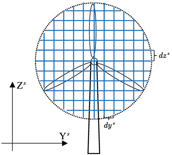 In practice, the above process can be discretized and divided into multiple grids along the height and width of the rotor of wind turbine, as shown in Figure 2. The coordinates of each grid’s center point represent the wind speed within that grid, and then equivalent calculations can be performed.