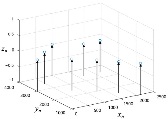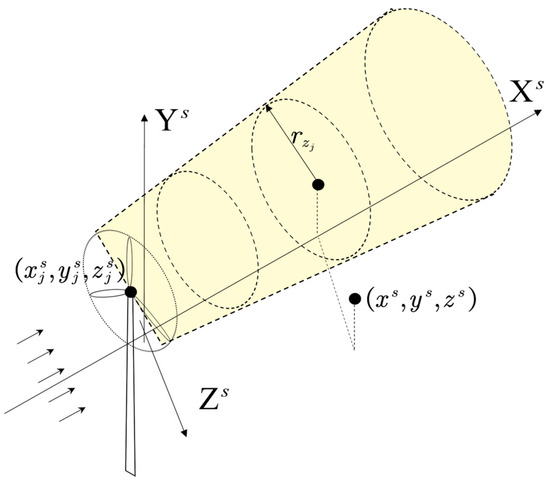 As shown inFigure 1, in this example, we adopt the right-hand coordinate system as the absolute position coordinate system of the wind farm, and the position coordinate of the wheel hub height of the wind turbine is . The coordinates are in meters.