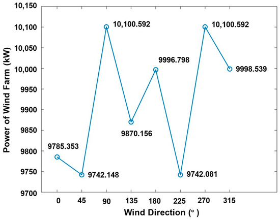 The power of the wind farm under different wind directions.