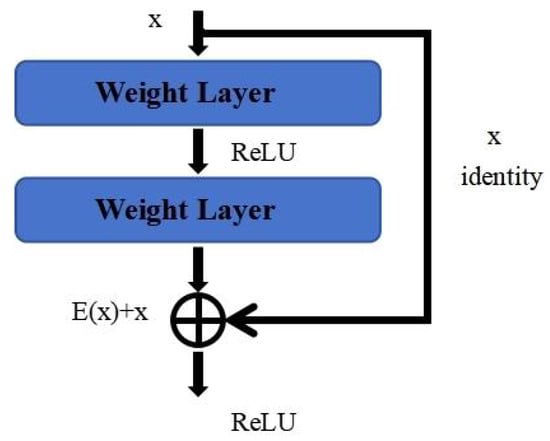 In assuming that the current output is and the input of the previous layer is x, the output, after passing through the residual structure, is . The residual is . The output of the current layer is ) when , which is the original neural network structure. This causes the output of the current neural network layer to be x, i.e., the cancellation of the current neural network layer when , and the structure of the residual unit is shown in Figure 1.