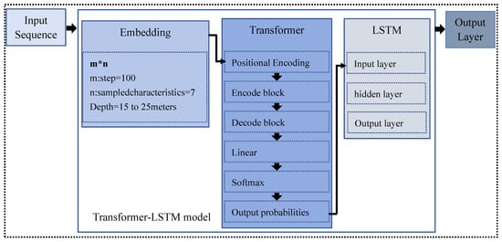 To address the above problems, we propose a Transformer- and LSTM-based hybrid approach to identify and classify lithology in blind wells. Using the multi-attention mechanism of the Transformer model and the ability of the LSTM network to capture the temporal spatial features of the lithology sequence, their combination can effectively learn the nonlinear relationship between logging curve data and their correlation in the depth dimension. After numerous experiments, we found that the Transformer–LSTM (T-LS) model outperformed several commonly used models in lithology prediction. To verify the model’s generalization ability, we used the T-LS model and random forest (RF) model to predict the lithology of blind wells without core data in the stratum, which showed that the T-LS model had a better generalization ability. The main contributions of this study are as follows: