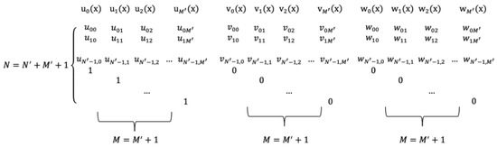 The polynomial division problem is another NP problem. Given a polynomial of order n and three sets of polynomials , , of order , find vector and satisfy the integer division relationship of Equation (12).