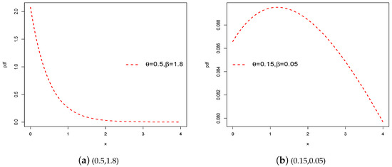 Figure 1 demonstrates the graphs for the pdf of the proposed model given in Equation (