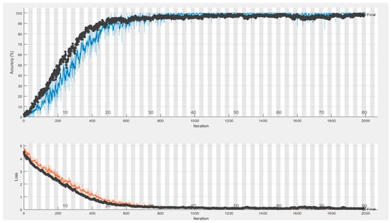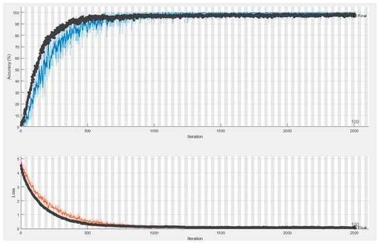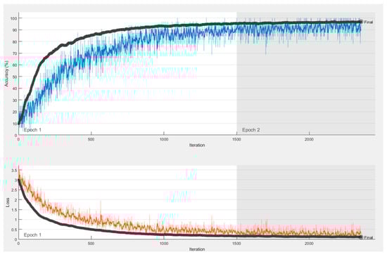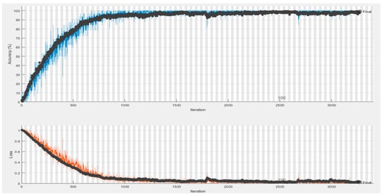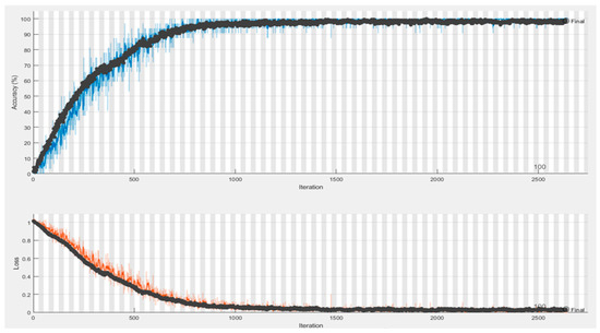 CNNs use a loss function to estimate the model’s loss, which is then utilized to update the neuronal weights in order to minimize the loss. For the Si-CNN model, in the proposed work, the Adam algorithm, which is an extension of Stochastic Gradient Descent (SGD), was used as the optimization algorithm of the model. Adam is an optimization algorithm that calculates adaptive learning rates for each network parameter [43].