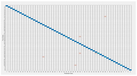 According to the results of the experiment with the “Cedar Signature” dataset, Si-CNN+NC was found to be the fastest model, completing training in 3428 s. Si-CNN and SGoogleNet models followed Si-CNN+NC by completing training in 3693 and 3890 s, respectively. The training times for each CNN model benchmarked using the “Cedar Signature” dataset are also presented in Table 9. As in the case of the “C-Signatures” dataset, the model with the longest training time was SDenseNet201. These experimental findings lead to the generalization that the deeper the deep neural network, the longer the training period. Similar to the “C-Signatures dataset”, when the training times and evaluation metrics of the Si-CNN and Si-CNN+NC models are compared, the most successful results are in the Si-CNN+NC model. At this point, the effect of the Si-CL classification layer can be seen. It can be noticed that the mistakes are returned rapidly and the training time is finished in a shorter amount of time due to the loss function employed in the Si-CL layer in this dataset.