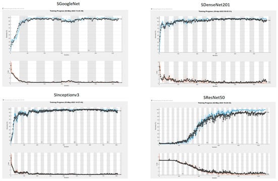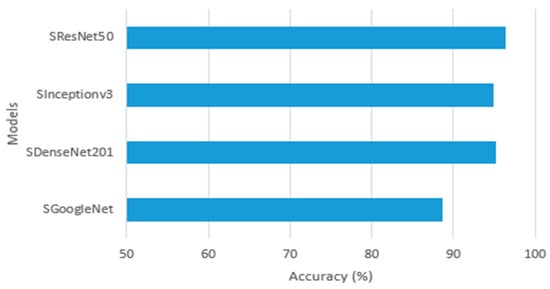 ResNet50: It is a model developed in 2015. The ResNet model won the 2015 ILSVRC ImageNet competition. ILSVRC is a structure that came first in the competition held in 2015 with an error rate of 3.6%. It is one of the first algorithms to use batch normalization. The network requires input images of size 224 × 224 × 3 [50]. These custom models, which were built for this work and are designated with TGoogleNet, TResnet50, and TDenseNet201, respectively, were applied to the binary image classification task because the original models were created for their own classification tasks.