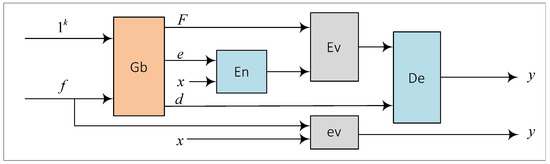 A universal representation of the garbling scheme can be derived from [34], where a garbling scheme is denoted as a five-tuple of algorithms (Gb, En, De, Ev, ev), as shown in Figure 1.