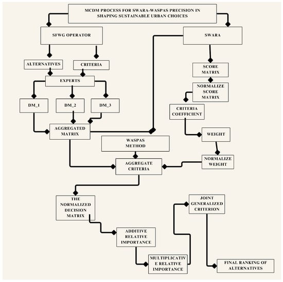 The SWARA methodology was developed by Kersuliene et al. [42] to provide DMs with a structured approach to rating and assessing choices. DMs can evaluate the relative relevance of each criterion by first offering their thoughts and then analyzing each criterion in order of its original potential worth. Because it is a crucial component that has an effect on decision making in the long term, the next step is to evaluate the order of relevance of each of the qualifications. This is particularly beneficial in complex situations, since it helps DMs to make better, more informed choices. The SWARA idea enables DMs to rationally analyze and rank possibilities, which is especially helpful in challenging situations.