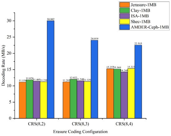 Current research has improved the efficiency of erasure codes in data recovery in several ways, focusing on encoding design, network transmission optimization, and decoding acceleration. With continuous breakthroughs in encoding design and the application of high-performance network technologies such as InfiniBand and RDMA in storage systems [,], issues related to encoding design and network bottlenecks have gradually been resolved, making the decoding efficiency of erasure codes a key factor affecting data recovery efficiency.