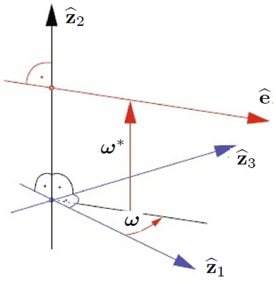 Through the locomotion of the , all kinematic–geometric features can be deduced with the Darboux vector . Therefore, from the presumption that , we designate the Disteli-axis () as