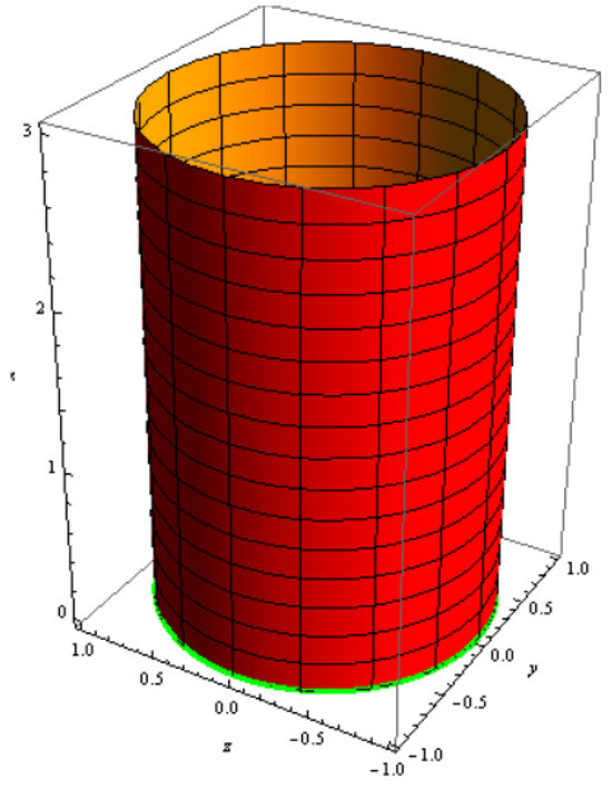 which clarifies a family of two-parameters of cylinders, for , , and (Figure 13).