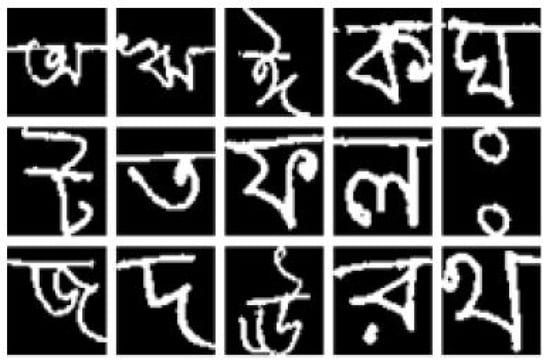 - Chowdhury, R.R.; Hossain, M.S.; ul Islam, R.; Andersson, K.; Hossain, S. Bangla handwritten character recognition using convolutional neural network with data augmentation. In Proceedings of the 2019 Joint 8th International Conference on Informatics, Electronics & Vision (ICIEV) and 2019 3rd International Conference on Imaging, Vision & Pattern Recognition (icIVPR), Spokane, WA, USA, 30 May–2 June 2019; pp. 318–323. [Google Scholar]