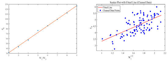 The data cleaning process effectively eliminated any erroneous values from both the X and Y datasets, as verified through a re-examination, as shown in Figure 7. Figure 7 is curve fitting results with the cleaned data and scattered data, respectively. Subsequently, a linear regression model was applied to the cleaned data, and a scatter plot featuring the fitted line was produced and saved as ‘scatter_plot_with_fitted_line_cleaned’. This visualization illustrates the correlation between the cleaned data points and the predictions of the linear model, offering enhanced insights into the model’s performance with the refined dataset.