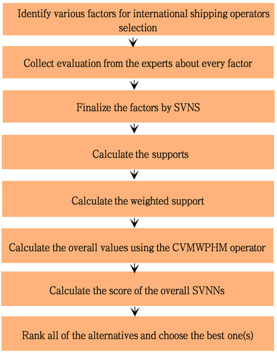 The remainder of this paper is structured as follows: Section 2 provides an overview of the pertinent literature and Section 3 explores the basic principles of SVNSs and HM and PA operators. The SVNPHM and SVNWPHM operators are introduced by combining the PA and HM operators in Section 4. Furthermore, this research examined certain characteristics of the suggested AOs. An MADM approach based on these AOs is developed in Section 5. In Section 6, an assessment and a comparison of shipping operators are carried out to support the proposed plan. Section 7 provides the conclusions.