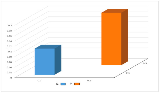 Let Q = (0.7, 0.1, 0.1) and P = (0.5, 0.2, 0.3) be two SVNNs. By following the procedures outlined in Definition 1, we can generate the following Figure 2.