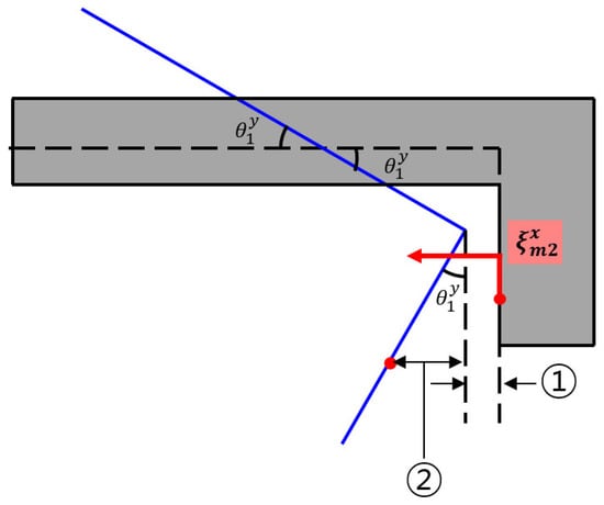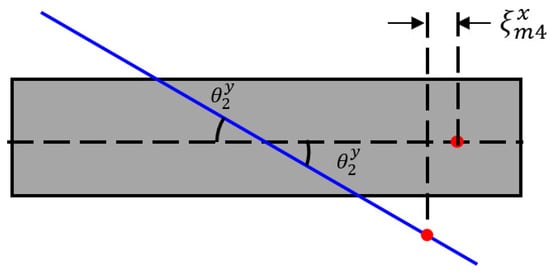 The dashed line presents the source’s equilibrium phase, while the blue solid line depicts the source’s motion by perturbation. The source’s displacement adjacent to the horizontal mounting system can be obtained by summing and , where is derived from the characteristic of an isosceles triangle and the trigonometric formulation, and is derived from the similitude ratio, as described in Equations (12) and (13), respectively.