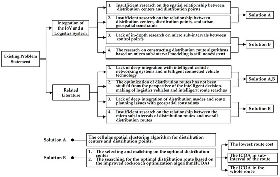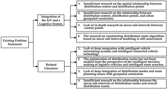Based on this analysis, we obtain the problem-sorting diagram. Figure 1 shows the existing problems in the current research on material distribution.