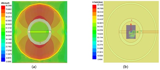 (a) Surface current distribution. (b) Magnetic field distribution.