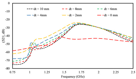 S21 of the proposed wireless power system for various dt.