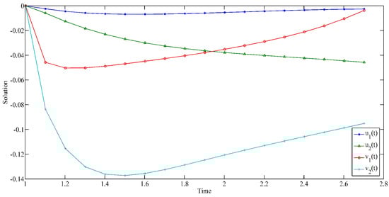 Numerical simulation of solutions in Example 2.