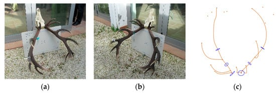 Regarding the different methodological typologies for estimating the value of asymmetry, some authors [12,14,20,33] have created methods and tools for quantifying the asymmetry of biological elements using projective techniques of linear measurements in two dimensions. In 2007, Bartoš et al. [35] estimated the degree of asymmetry using three antler characteristics, the weight, length, and number of tips, without relying entirely on geometric values.