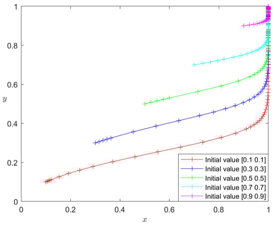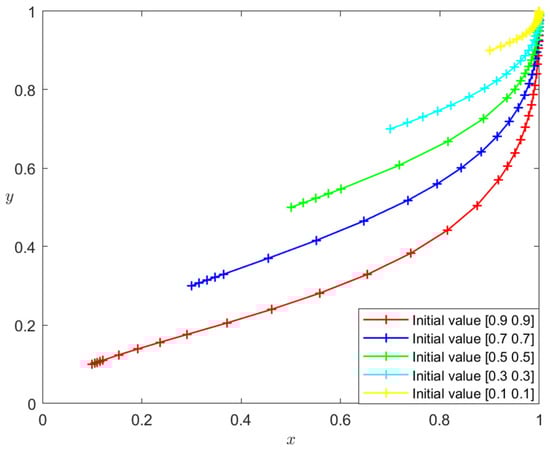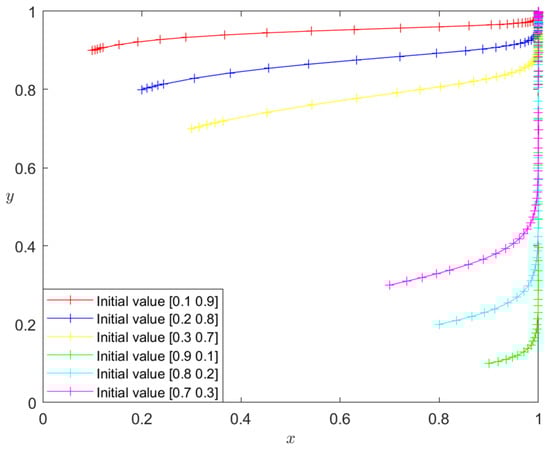 - When , the . At this time, for any value, any probability of the MSR “resilience investment strategy” is an evolutionarily stable strategy, the probability of the system choosing the MSR’s resilience investment will not change over time, and the system is in an evolutionarily stable state.