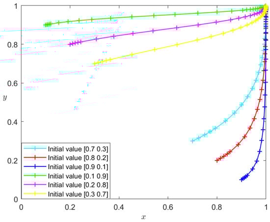 According to the stability theorem for replicated dynamic equations proposed by Friedman [], if and , the system will converge to a stabilizing strategy.