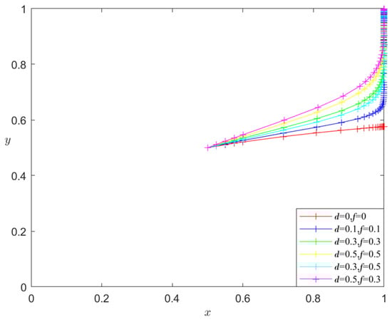 Array 1: . In the case when increases from 0 to 0.2 while other parameters remain unchanged, it can be seen from Figure 18 that as the value of increases, the MSM chooses the resilience investment more quickly, but it is not significant. When increases from 0 to 0.2, as the value of increases, the MSR accelerates in selecting the “resilience investment” strategy. This indicates that the larger the market encroachment revenue coefficient is when both parties choose the “resilience investment” strategy, the faster the resilience investment evolves.