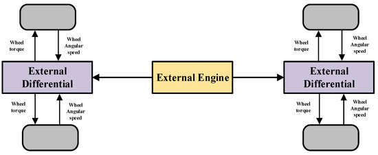A combined simulation was conducted in Simulink/Carsim software to validate the efficacy of the sensorless control approach for a PMSM using the MCSVDGHCKF algorithm. In this paper, the kernel width of the MCSVDGHCKF algorithm is set to . Figure 4 shows the setting of DDEV in the Carsim powertrain. The Carsim output wheel angular speed is used as a reference rotor speed. The main parameters of PMSM in simulation are shown in Table 1.