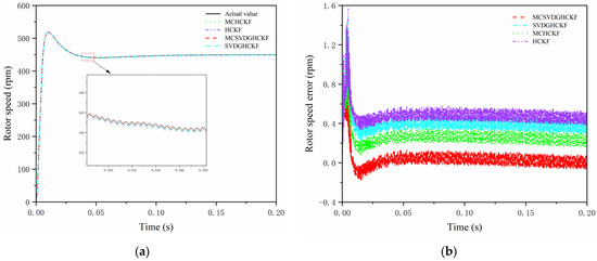 Based on the MCSVDGHCKF algorithm, the PMSM discrete mathematical model established by Equations (61)–(64) can be used to estimate rotor speed and position.