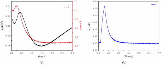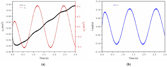 The measured value of the sensor under serpentine conditions. (a) Longitudinal and lateral acceleration measurements; (b) yaw rate measurements.