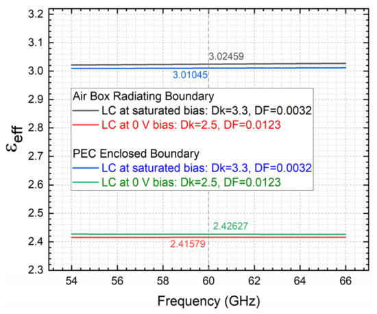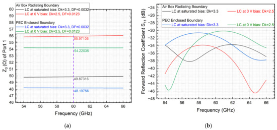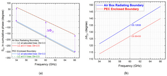 - Li, J.; Li, H. Liquid Crystal-Filled 60 GHz Coaxially Structured Phase Shifter Design and Simulation with Enhanced Figure of Merit by Novel Permittivity-Dependent Impedance Matching. Electronics 2024, 13, 626. [Google Scholar] [CrossRef]