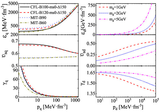 Alternatively, an improvement of the EOS for cold dense SQM was made by including the effects of color superconductivity [78,79,80]. Assuming the SQM in the color-flavor locked (CFL) phase, the modified EOS in CFL model [80] is given as follows: