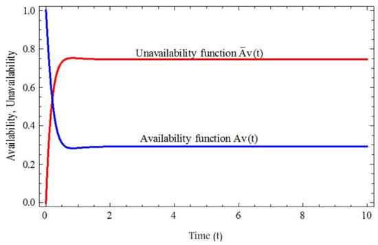 Availability function and unavailability function vs. time.