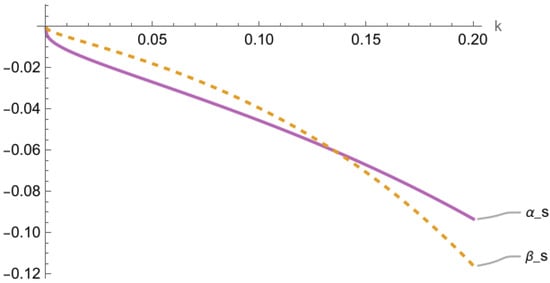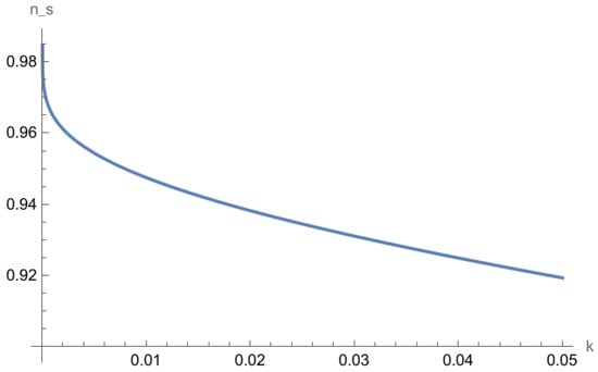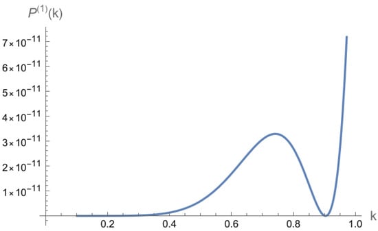 For , we need to solve Equation (45), which is of the second order and inhomogeneous. However, we can carry on a qualitative analysis in the limit of small , in which we aim to compute the spectrum; this regime assures that the inflationary perturbations freeze out [,]. The term with results in being dominant, while and . Therefore, by neglecting the last term, we deal with the approximate form of Equation (45) in the limit of small :