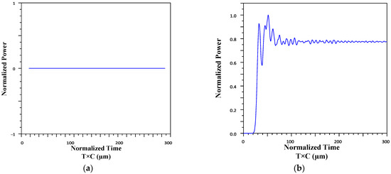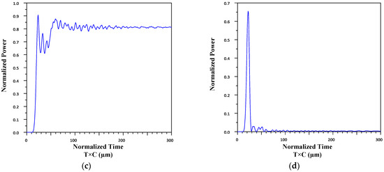 Polar diagrams of the output normalized power for three logical states of the proposed XOR gate are shown in Figure 8. The correct performance of the proposed all-optical gate can be observed in these polar diagrams. In the polar diagrams, the radial axes show the normalized values of the output power, while the angular axes show the normalized time parameter.