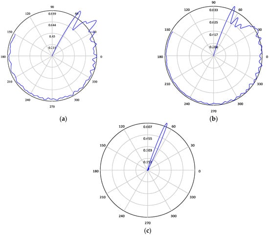 Polar diagram of the normalized output power for the (a) A = 0, B = 1; (b) A = 1, B = 0; and (c) A = 1, B = 1 states.