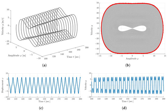 After substituting into Equation (5) and replacing with t, the resulting planar dynamical system is obtained: