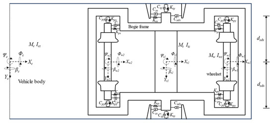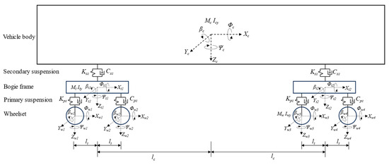 Therefore, taking the inter-carriage coupling into account, each vehicle’s motion equations within the train subsystem can be written in matrix form using Equation (6).
