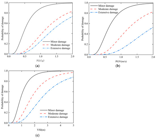- Based on DM and the selected optimal IM, the fragility curves are established by using a two-parameter lognormal distribution model.